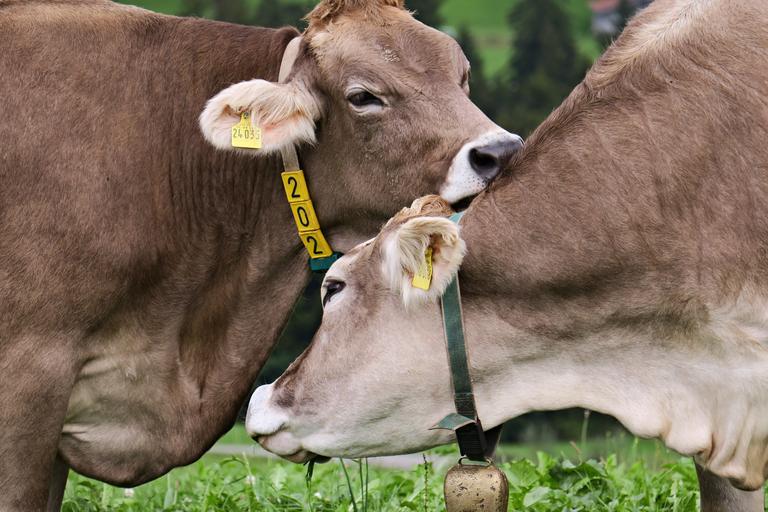 Keywords: cows couple meadow cow agriculture pasture foot cute faithful look friendship smooch intimate love fur care clean ears farm alpine relaxed nature livestock stall milk milk cow