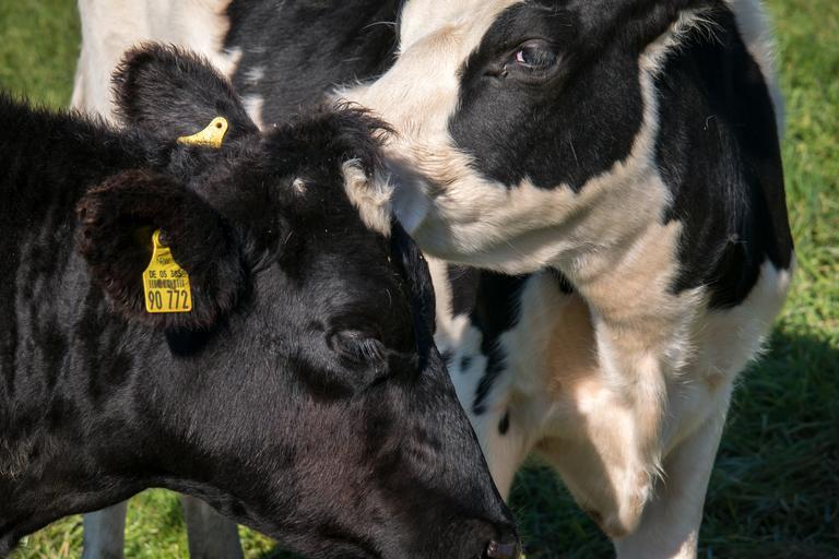 Keywords: cows pasture alm meadow love caress nudge nudges graze cattle friend eat smooch