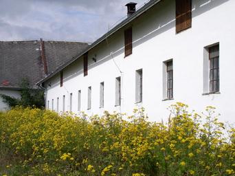 Keywords: cowshed tansy yellow sun summer light white nature south bohemia blue old story history