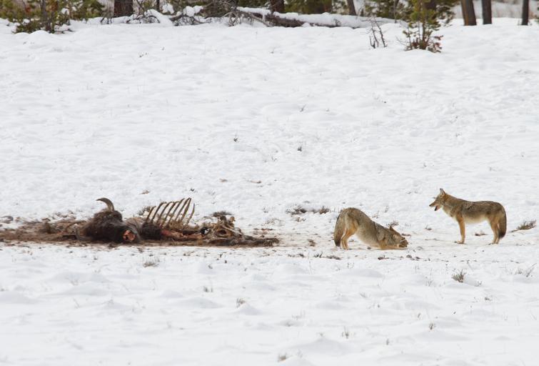 Keywords: yellowstone yellowstone national park yellowstonenationalpark wildlife outdoor snow Coyotes on bison carcass in Lower Geyser Basin; Jim Peaco; November 17, 2015; Catalog #20391d; Original #IMG_6481 Coyotes on bison carcass in Lower Geyser Basin; Jim Peaco; November 17, 2015; Catalog #20391d; Original #IMG_6481 |
