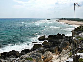 | Keywords: Cozumel Coconuts-27527.jpg The view looking south down the windward eastern shore from atop the cliffs at http //www islacozumel net/food/coconuts Coconuts Bar Grill <br>Photo taken with a Panasonic Lumix DMC-FZ50 on the island of Cozumel in Quintana Roo Mexico http //www kenthomas us KenThomas us<br> personal website of photographer 2008-02-02 13 45-06 <sup>ISO 8601</sup> Ken Thomas This image is released to the public domain and therefore no permission or credit is required <br> Comments feedback and/or questions however are always welcome See my user page for contact info 20 23 14 59 N 86 52 17 76 W heading S Beaches of Cozumel Taken with Panasonic Lumix DMC-FZ50 |