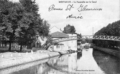 Keywords: CP Montargis passerelle sur le canal.jpg Passerelle Victor Hugo sur le canal de Briare Montargis Loiret France Built by Gustave Eiffel in 1891 http //cards geneanet org/pics/carte/normal/m/michelraimbault168 jpg Croquant copyright expiré 47 994783 2 735212 pd-old Passerelle de la Marolle Canal de Briare Postcards of Loiret |