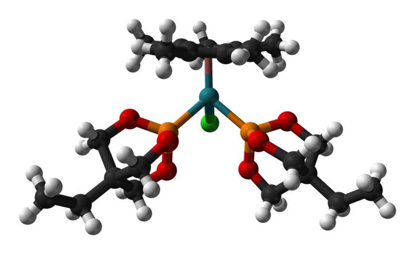 | Keywords: (CpMe5)RuCl(EtCage)2-from-xtal-1996-3D-balls.png Ball-and-stick model of the caged phosphite complex CpMe<sub>5</sub> RuCl EtCage <sub>2</sub> as found in the crystal structure Colour code Carbon C black Hydrogen H white Phosphorus P orange Oxygen O red Ruthenium Ru turquoise Chlorine Cl green Crystal structure by X-ray diffraction from http //dx doi org/10 1021/om960319l Organometallics 1996 15 5209 “5215 Model constructed in http //www crystalmaker com/ CrystalMaker 8 1 Image generated in http //accelrys com/products/discovery-studio/visualization/discovery-studio-visualizer html Accelrys DS Visualizer Own 2009-07-07 Ben Mills Benjah-bmm27 Images by Ben Mills Ball-and-stick models Ruthenium complexes Chloro complexes Caged phosphite complexes Pentamethylcyclopentadienyl complexes |