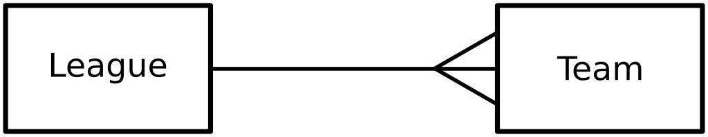 Keywords: CPT-Databases-Example1MLeagueTeam.svg en showing a one to many relationship between a league and a football team inkscape own Pluke 2011-05-15 Cc-zero Database models Entity-relationship models