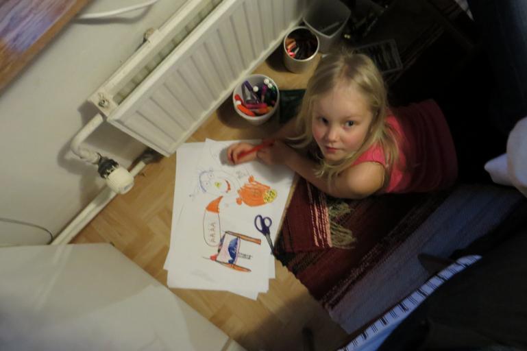 | Keywords: people indoor This is Vilja camped in the corner where she was making a drawing for Laura and I to take home. When I thanked her for it, in English, she replied also in English 'you're welcome'. It brought me at least some comfort that her parents were as surprised as I was! She hasn't started school yet! This is Vilja camped in the corner where she was making a drawing for Laura and I to take home. When I thanked her for it, in English, she replied also in English 'you're welcome'. It brought me at least some comfort that her parents were as surprised as I was! She hasn't started school yet! |