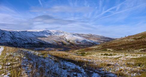 Keywords: First snowfall in Brecon Beacons National Park 2015. Looking towards Craig Cerrig-gleisiad on the A470. snow brecon