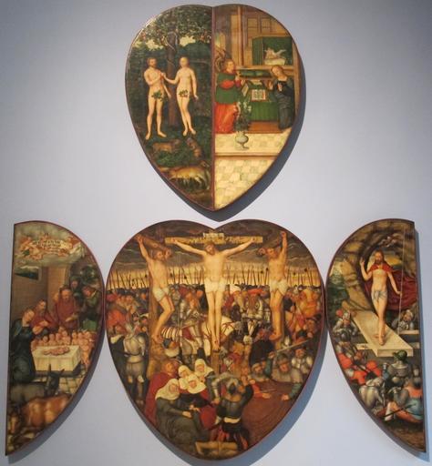 Keywords: Cranach il giovane, altare colditz, 1584, 01.JPG Artwork Creator Lucas Cranach II title Flügelaltar in Herzform Colditzer Altar Außenseite Heart-Shaped Winged Altarpiece Colditz Altarpiece Left Adam and Eve Right Annunciation 1584 Institution Germanisches Nationalmuseum own Sailko 2011-11-04 12 04 14 PD-old-100-1923 GFDL Cc-by-sa-3 0 DEFAULTSORT Cranach Lucas 2; Heart-Shaped Winged Altarpiece Colditz Altarpiece Colditz Altar 03 Paintings in the Germanisches Nationalmuseum Adam and Eve in paintings Altars of the crucifixion of Jesus Christ in Middle Franconia Green curtains in art Heart shapes Holy Spirit depicted as a dove in paintings of Annunciation Paintings by Lucas Cranach I with fur Reredos in Germany 16th-century paintings of Annunciation Ž 16th-century religious paintings in Germany 1580s paintings from Germany 1580s paintings in Bavaria 1580s religious paintings 1584 paintings Photographs by User Sailko Taken with Canon PowerShot G12 |