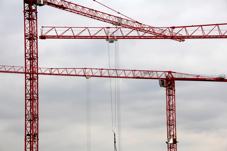 Keywords: crane structure technology construction work site construction work construction machinery baukran metal lattice boom crane crane boom red