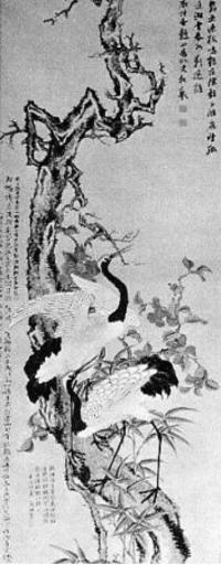 | Keywords: Cranes by Tanomura Chikuden.png en Cranes by Tanomura Chikuden ja 絹 著色歳寒三友雙鶴図 田能 竹田筆 http //bunkazai pref yamaguchi lg jp/bunkazai/summary asp mid 40008 pid gs_ch svalue bloop mloop floop shicyouson meisyou shitei kubun syurui jidai loopcnt m_mode m_value m_loopcnt Tanomura Chikuden 1777-1835 1832 PD-old-100 Tanomura Chikuden |