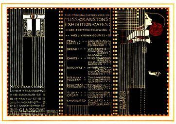 Keywords: Cranston's exhibition cafe.jpg Miss Cranston's Cafes at the 1911 Glasgow International exhibition scan from The Life and Work of Rennie Mackintosh ISBN 0752514458 other date ca 1911 PD-old-80 PD-1923 1911 works Willow Tearooms Margaret MacDonald Food menus