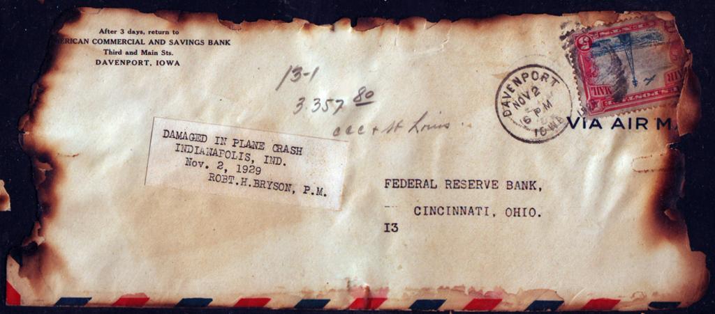 | Keywords: Crash Cover Nov 2 1929.jpg  Partially burned crash cover carried on the regular evening Southbound Air Mail flight of USPOD CAM 24 which departed Maywood Field Chicago IL on schedule at 9 00PM November 2 1929 for Cincinnati OH via Indianapolis IN Pilot Charles Vermilyea miscalculated his altitude while landing at Mars Hill Airport in Indianapolis at 10 45PM and crashed resulting in a fire with loss of both pilot and airplane About 85 of the mail much of which was damaged was salvaged and forwarded to its addressees with a notice applied to each cover reading DAMAGED IN PLANE CRASH INDIANAPOLIS IND Nov 2 1929 ROBT H BRYSON P M The Cooper Collection of Aerial Postal History Transferred from http //en wikipedia org en wikipedia; transferred to Commons by User Michael Romanov using http //tools wikimedia de/~magnus/commonshelper php CommonsHelper 2009-01-05 Original uploader was Centpacrr at http //en wikipedia org en wikipedia CC-BY-SA-3 0 2 5 2 0 1 0; Released under the GNU Free Documentation License; PD-USGOV <center>Postage Stamp</center> PD-USGov Original upload log page en wikipedia Crash_Cover_Nov_2_1929 jpg 2009-01-05 05 13 Centpacrr 1000×440× 174110 bytes <nowiki>Crash Cover carried on Southbound flight of CAM 24 departing Chicago IL at 9 00OM November 2 1929 for Cincinnati OH via Indianapolis IN Pilot Charles Vermilyea miscalculated his altitude while landing at Mars Hill Airport in Indianapolis at 10 4</nowiki> Crash covers Postal history of the United States Postal covers of the United States Stamps on covers and postcards Airmail stamps of the United States Airmail covers |