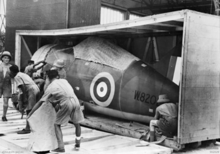 | Keywords: Crated Buffalo.jpg en AMERICAN FIGHTERS FOR MALAYA R A F MECHANICS IN SINGAPORE ARE WORKING AT TOP PRESSURE TO ASSEMBLE AND PILOTS TO TEST LARGE NUMBERS OF BREWSTER BUFFALOES AMERICAN HIGH SPEED FIGHTING PLANES AT ONE SINGAPORE R A F STATION HANGAR AFTER HANGAR IS CRAMMED WITH ASSEMBLED PART ASSEMBLED AND CRATED BUFFALOES MANY OF THE PLANES ARE ALREADY IN THE AIR OVER MALAYA FLOWN OFTEN BY BRITISH FIGHTER PILOTS WHO HAVE ALREADY BAGGED NAZI PLANES ONE OF THEM TEN IN EUROPE PHOTO SHOWS BRITISH AND ASIATIC R A F WORKERS TAKING A BUFFALO FROM ITS CRATE 012129 Australian War Memorial N/A PD-Australia Brewster Buffalo Royal Air Force Black and white photographs World War II forces of Australia in Australia |
