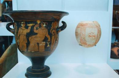 Keywords: Cratera.jpg es Crátera de cerámica griega y huevo de avestruz fenicio Museo Nacional de Arqueología Subacuática ARQUA Cartagena España own Nanosanchez 2008-11 Ancient Greek art in Cartagena Spain Ancient Greek pottery in Spain Bell kraters Collections of the Museo Nacional de Arqueología Subacuática ARQUA Red-figure pottery |