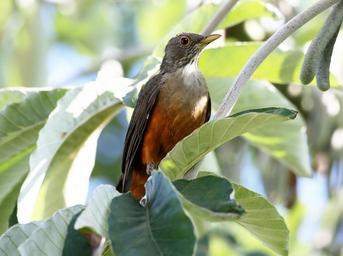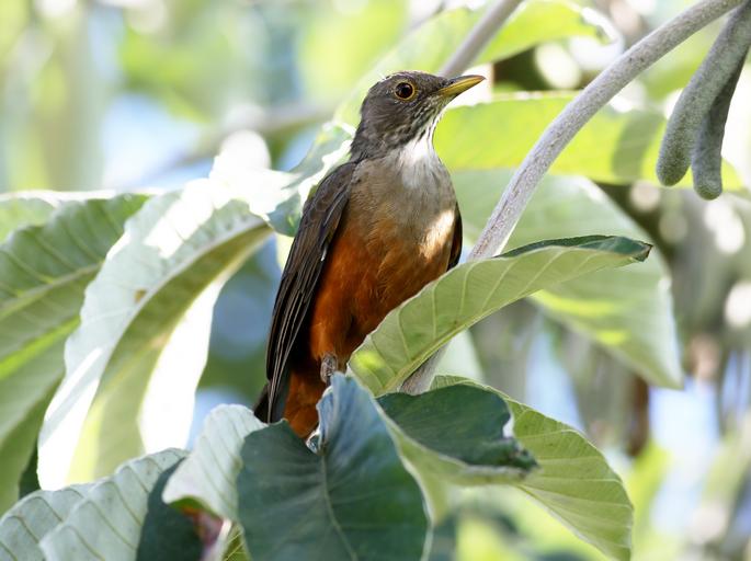 Keywords: creamy orange bird tropical bird colorful on the branch brazilian forest observation looking between sheets