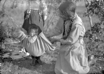 Cree_Girl_Playing_With_a_Child_Suspended_in_a_Small_Hammock_-_Waterhen_River,_Northern_Saskatchewan.jpg (3000x2150)