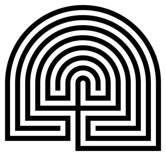 | Keywords: Cretan-labyrinth-half-round.svg  One version of the ancient Cretan type of labyrinth shown with the only curved lines being concentric semicircular arcs around the center of the whole labyrinth For one possible construction method see File How to do labyrinth svg For other variants see File Cretan-labyrinth-square svg File Cretan-labyrinth-round svg File Cretan-labyrinth-round2 svg and File Cretan-labyrinth-circular-disc svg For the path through a squared version of this labyrinth see File Cretan-labyrinth-square-path svg Self-made graphic converted from the following vector PostScript source <pre> 300 396 translate 5 dup scale 25 setlinewidth 2 setlinecap /L lineto def -100 -100 moveto -300 -100 L 25 125 325 180 0 arcn 350 -150 L 50 -150 L 50 -50 L 250 -50 L 25 125 225 0 180 arc -200 0 L 200 0 L 25 125 175 0 180 arc -150 50 L -50 50 L 25 125 75 180 0 arcn 0 -25 rlineto stroke 100 -100 moveto 300 -100 L 25 125 275 0 180 arc -250 -50 L -50 -50 L -50 -150 L -350 -150 L 25 125 375 180 0 arcn 400 -200 L 0 -200 L 25 125 25 180 0 arcn 50 50 L 150 50 L 25 125 125 0 180 arc 0 -25 rlineto stroke showpage EOF</pre> 2009 AnonMoos v fl thumb center Graphic labyrinths Images with PostScript source code |