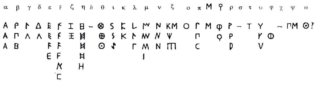 Keywords: CretanEpichoricAlphabets.png en Cretan Epichoric alphabetical variants Own Davius 2009-06 Greek alphabet Alphabet charts