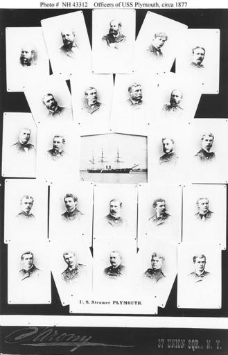 | Keywords: Crew of USS Plymouth 1877.jpg en Photo NH 43312 complete caption USS Plymouth 1869-1884 Photographic montage by Sarony 37 Union Square New York showing the ship surrounded by portraits of her officers circa 1877 The officers seen are Top row left to right Paymaster Daniel A Smith; Chief Engineer Robert L Harris; Captain Edward Barrett; Surgeon Somerset Robinson; and Lieutenant Commander Francis A Cook Second row left to right Master William P Elliott; Lieutenant Charles H Judd; Lieutenant Charles H Stockton; and First Lieutenant Henry Clay Cochrane USMC Middle row left to right Midshipman Stephen Jenkins; Master Samuel L Graham; Master Boynton Leach; and Assistant Surgeon Walter A McClurg Fourth row left to right Ensign Samuel W B Diehl; Assistant Engineer Henry Herwig; Pay Clerk James Smith; Assistant Engineer Horace Frick; and Midshipman Templin M Potts Bottom row left to right Midshipman Henry Minett; Midshipman Anthony W Rollins; Captain's Clerk Marburg; Midshipman Charles C Rogers; and Midshipman Stevenson B Mallory Courtesy of Captain William T Dutton USN Retired 1981 U S Naval Historical Center Photograph http //www history navy mil/photos/images/h43000/h43312l htm United States Navy photos Sarony 37 Union Sq New York NY collage ca 1877 PD-USGov-Military-Navy photos PD-1923 collage PD-USGov-Military-Navy Sailors from the United States Navy Naval ships of the United States |