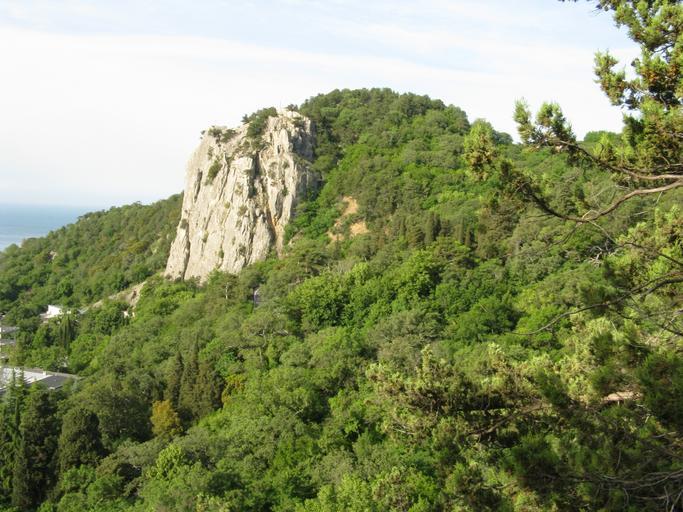 Keywords: crimea morning landscape forest mountains cliff rocks stones green trees