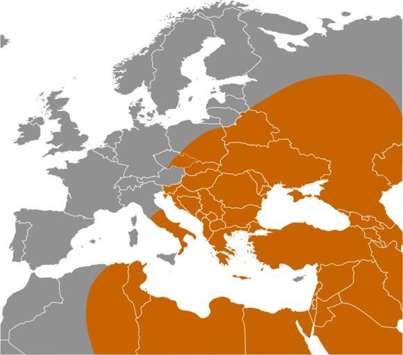 | Keywords: Cro-Magnon range 32,500 ybp.svg Range map of the Cro-Magnon man Homo sapiens - also known as European Early Modern Humans or EEMH showing the extent of their migration into Europe the western Middle East and north Africa up to 32 500 years before present ybp File BlankMap-World6 compact svg by Canuckguy et al Data taken from maps located in Currat Mathias and Laurent Excoffier Modern humans did not admix with Neanderthals during their range expansion into Europe PLoS Biology 2 no 12 2004 e421 Academic Editor David Penny Copyright ©2004 Currat and Excoffier DOI 10 1371/journal pbio 0020421 ISSN 1544-9173 LCCN 2003-212293 OCLC 52292449 The article has the following statement attached This is an open-access article distributed under the terms of the Creative Commons Attribution License which permits unrestricted use distribution and reproduction in any medium provided the original work is properly cited Note The range extent is approximate please allow for a small factor of error Date 1 April 2010 Author Saukkomies en wikipedia Sreejithk2000 CommonsHelper 2010-03-31 Saukkomies wikipedia en Saukkomies Original upload log page en wikipedia Cro-Magnon_range_32 2C500_ybp svg 2010-03-31 06 46 Saukkomies 147×130× 300778 bytes <nowiki>Range map of the Cro-Magnon man Homo sapiens - also known as European Early Modern Humans or EEMH showing the extent of their migration into Europe the western Middle East and north Africa up to 32 500 years before present ybp File Blan</nowiki> Homo sapiens distribution maps Paleolithic Cro-Magnons Maps of European Paleolithic Open Access File of the Day |