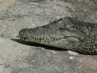 Keywords: crocodile head reptile sunning animal predator teeth power carnivore tropical powerful dangerous