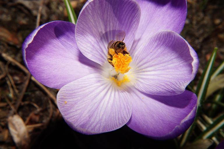 Keywords: crocus flower blossom bloom close bee frühlingsanfang pollination