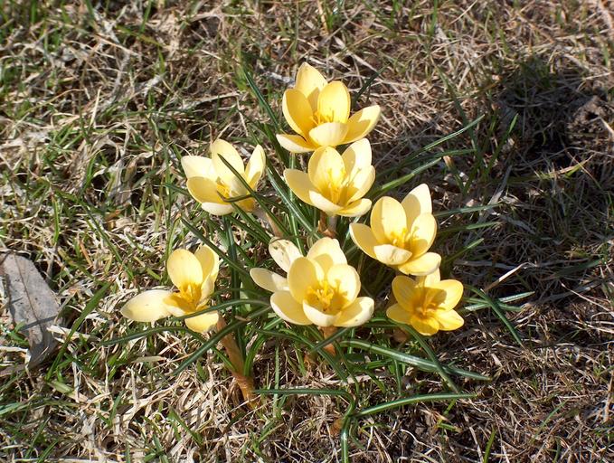 Keywords: crocus flowers garden nature spring plant yellow crocus flowers