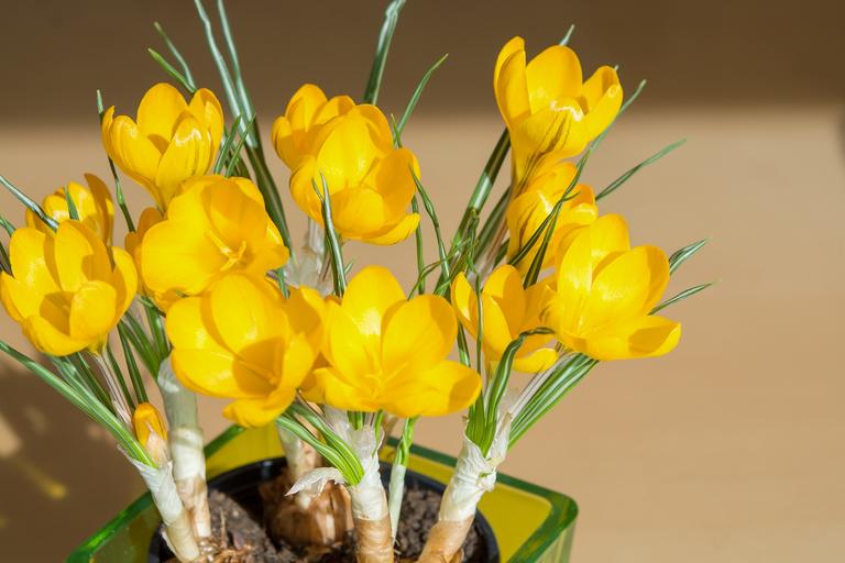 Keywords: crocus flowers spring flowers yellow sunlight tender yellow flowers spring early bloomer close
