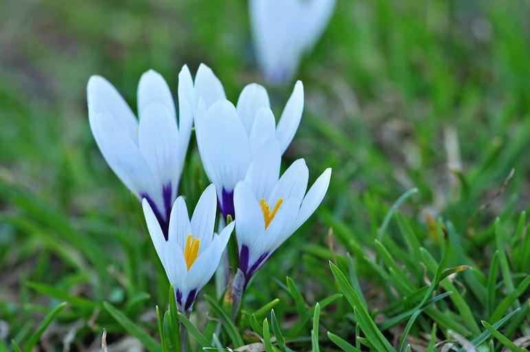 Keywords: crocus flowers wildflowers spring flowers signs of spring early bloomer spring meadow nature white grass close