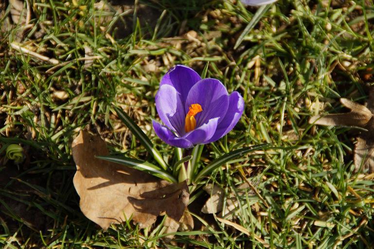 Keywords: crocus spring purple lonely splash of color early bloomer harbinger of spring bloom close flower
