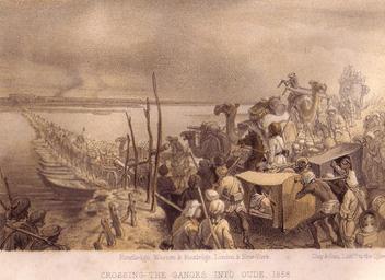 | Keywords: Crossing the Ganges into Oude (Awadh).jpg  Crossing the Ganges into Oude Awadh 1858 William Howard Russell 'My Diary in India' vol 1 1860 1860 Book object history credit line accession number 'My Diary in India' vol 1 http //www asiafinest com/forum/lofiversion/index php/t119636 html PD-Art Ganges River in art 1860 in India Siege of Lucknow |