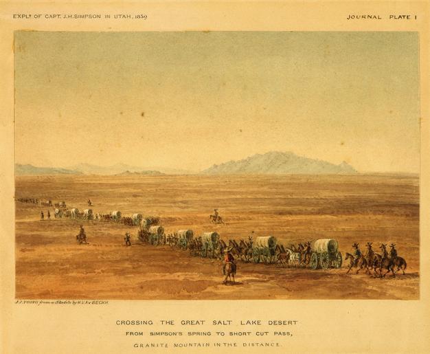 | Keywords: Crossing the Great Salt Lake Desert From Simpson's Spring to Short Cut Pass, Granite Mountain in the - NARA - 305637.tif Scope and content This sketch shows a wagon train moving across the desert This sketch is Plate I in Lt J H Simpson's 1859 Journal of Explorations in Utah General notes 305637 Local identifier 77-CWMF-MISC120 1 War Department Office of the Chief of Engineers 1818 - 09/18/1947 NARA-Author Young John J Artist 4400191 <br /> Cartographic and Architectural Records Section Special Media Archives Services Division NWCS-C National Archives at College Park 8601 Adelphi Road College Park MD 20740-6001 1859 - 1859 Record group Record Group 77 Records of the Office of the Chief of Engineers 1789 - 1999 Record group ARC 406 Civil Works Map File compiled 1800 - 1947 Series ARC 305566 File unit File unit ARC Variant control numbers NAIL Control Number NWDNC-77-CWMF-MISC120 1 yes Other versions <gallery> File Crossing_the_Great_Salt_Lake_Desert_From_Simpson's_Spring_to_Short_Cut_Pass _Granite_Mountain_in_the_distance _-_NARA_-_305637 tif tif File Crossing_the_Great_Salt_Lake_Desert_From_Simpson's_Spring_to_Short_Cut_Pass _Granite_Mountain_in_the_distance _-_NARA_-_305637 jpg jpg </gallery> NARA-cooperation PD-USGov Great Salt Lake Desert Granite Peak Tooele County Utah Granite Mountain Tooele County Utah Wagon trains NARA TIF images with categorized JPGs |