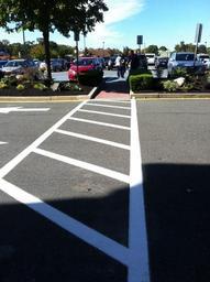 | Keywords: safety handicapped disabled children walk adults outdoor road Crosswalk for patrons of nearby shops. When this shopping center was brand new, I noticed the decorative shrubs blocked patrons from crossing safely; they would have to walk a distance and then go into traffic in order to get to the shops. I contacted a store owner, who put me in contact with the complex owners, who put me in contact with the shopping center builder. I explained to the builder that - yes - he did install enough handicapped spaces BUT disabled people would be required to enter traffic to get to the stores safely. He understood immediately once he thought about it. Within a short time, the pretty shrubbery was removed and this brick-lined walkway was installed. The builder was not being negligent, he did not think about function, he focused on attractiveness. It is important to gather input from those who would become users of any service. Each time I visit these shops, I smile to myself; almost every person shopping here crosses on that walkway through the handicapped spaces. Self advocacy is important in my volunteer work. The organization that I volunteer with teaches parents to advocate for themselves and their children. Crosswalk for patrons of nearby shops. When this shopping center was brand new, I noticed the decorative shrubs blocked patrons from crossing safely; they would have to walk a distance and then go into traffic in order to get to the shops. I contacted a store owner, who put me in contact with the complex owners, who put me in contact with the shopping center builder. I explained to the builder that - yes - he did install enough handicapped spaces BUT disabled people would be required to enter traffic to get to the stores safely. He understood immediately once he thought about it. Within a short time, the pretty shrubbery was removed and this brick-lined walkway was installed. The builder was not being negligent, he did not think about function, he focused on attractiveness. It is important to gather input from those who would become users of any service. Each time I visit these shops, I smile to myself; almost every person shopping here crosses on that walkway through the handicapped spaces. Self advocacy is important in my volunteer work. The organization that I volunteer with teaches parents to advocate for themselves and their children. |