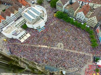 Keywords: crowd human group collection protest strike many people cathedral square trombone day ulm