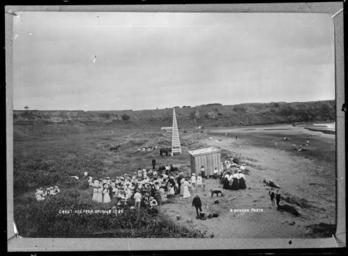 Keywords: blackandwhite monochrome photo border outdoor black and white Crowd at a picnic at the beach at Opunake, with a man standing beside billies heating over a fire. Photograph taken by David Duncan, photographer in Opunake (see Wise's Post Office Directory 1914) Inscriptions: Inscribed - Photographer's title on negative -bottom left: Greetings from Opunake. [No.] 1980.bottom right: D. Duncan Photo. Quantity: 1 b&w original negative(s). Physical Description: Dry plate glass negative 4.5 x 6.5 inches Duncan, David, fl 1910s. Crowd of people at the beach at Opunake - Photograph taken by David Duncan. Price, William Archer, 1866-1948 :Collection of post card negatives. Ref: 1/2-000060-G. Alexander Turnbull Library, Wellington, New Zealand. natlib.govt.nz/records/23034153 Crowd at a picnic at the beach at Opunake, with a man standing beside billies heating over a fire. Photograph taken by David Duncan, photographer in Opunake (see Wise's Post Office Directory 1914) Inscriptions: Inscribed - Photographer's title on negative -bottom left: Greetings from Opunake. [No.] 1980.bottom right: D. Duncan Photo. Quantity: 1 b&w original negative(s). Physical Description: Dry plate glass negative 4.5 x 6.5 inches Duncan, David, fl 1910s. Crowd of people at the beach at Opunake - Photograph taken by David Duncan. Price, William Archer, 1866-1948 :Collection of post card negatives. Ref: 1/2-000060-G. Alexander Turnbull Library, Wellington, New Zealand. natlib.govt.nz/records/23034153 |