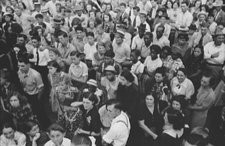 MAKE A MEME View Large Image CrowleyCrowdListening1938.jpg Crowd listening to Cajun band National Rice Festival Crowley Louisiana 1938 Photo by Russell Lee for Farm Security Administration/WPA via http //hdl loc gov/loc pnp/fsa 8a24073 1938-10 Creator Russell Lee ...
