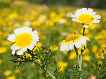 Keywords: crown anthemideae glebionis coronarian composites asteraceae mallorca flowers meadow yellow cup-shaped inflorescences inflorescences glebionis coronaria var discolor bi color white blütenmeer gold flower cretan gold flower