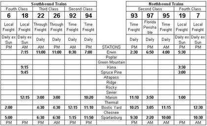Keywords: Crrsched2.JPG en CRR Freight Schedules - Erwin to Spartanburg Own Ronlindler 2009-04-26 Tables information