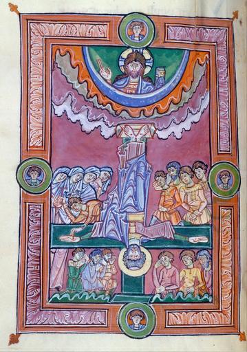 | Keywords: Crucifixion of Saint Peter - Google Art Project.jpg Sacramentary in Latin France Abbey of Mont-Saint-Michel ca 1060 The Abbey of Mont-Saint-Michel rose in importance during the Norman Conquest In the eleventh century when the abbey was built on the rock its scriptorium pioneered a Romanesque style As a pilgrimage site between England and the Continent the abbey absorbed influences from both regions and disseminated its distinctive style This Sacramentary containing texts read by the celebrant during high Mass is the most lavish manuscript from Mont-Saint-Michel This Crucifixion of St Peter is executed in the characteristic Norman style with figures more drawn than painted The busy drapery and foliage jagged lines and distinctive pale palette betray the influence of tenth- and early-eleventh-century English decoration commons date ca 1060 commons medium commons dimensions w215 x h286 mm commons institution commons location commons references MS M 641 fol 122v commons object_history commons exhibition_history commons credit_line commons inscriptions commons notes commons accession_number commons source commons permission commons other_versions commons zoom core title Crucifixion of Saint Peter core creator Unknown core date dateCreated 1060 core format w215 x h286 mm core type Manuscript core relation http //www themorgan org/collections/collections asp id 74 c-089916f9 customtext credit_line Purchased by J P Morgan Jr google display_date 1060 google is_artproject TRUE google is_gigapixel FALSE google is_secured TRUE google partner/id 00000000089916f9 google partner/name The Morgan Library Museum google picasa_token o2EtUBCxlg1-hBzeehTqmxuuioQ special url_id vwGD5sYguR48jw special partner/name_no_lang The Morgan Library Museum PD-old-100-1923 Google Art Project works by unknown artist Pierpont Morgan Library manuscripts Miniatures of Saint Peter Crucifixion of Saint Peter 11th-century illuminated manuscripts |