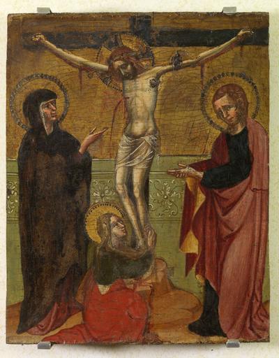 Keywords: Crucifixion (Venice, 14th c.).jpg Σταύρωση δεύτερο μισό του 14ου αιώνα 39 5x50εκ άγνωστος ζωγράφος α ό τη Βόρεια Ιταλία ή τη Βενετία Στην εικόνα ο Χριστός αριστάνεται νεκρός ε άνω στο σταυρό Α ό τη λογχισμένη λευρά τους βραχίονες και τα έλματά του τρέχει αίμα Η Παναγία και ο Ιωάννης στέκονται α ό κάθε λευρά του σταυρού και με τις χειρονομίες και τις εκφράσεις τους τονίζουν τη δραματικότητα της σκηνής ενώ στη βάση του σταυρού η αγδαληνή γονατισμένη αγκαλιάζει τα όδια του Εσταυρωμένου Στο βάθος εικονίζεται το τείχος της Ιερουσαλήμ http //eib xanthi ilsp gr/gr/icons asp cursort iconTitle selectFieldValue vpage 2 second half of the 14th century unknown painter from Northern Italy and Venice PD-old Files uploaded by Shakko from various sources 14th-century paintings of the Crucifixion of Christ |
