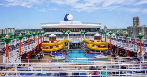 Keywords: cruise ship pool slide travel water boat tourism holiday summer vacation swimming transport sail port tampa florida sky