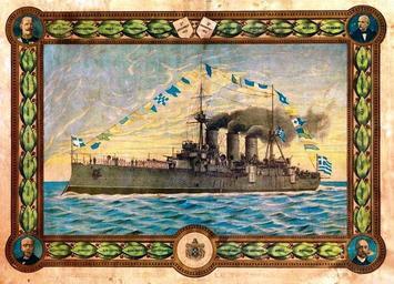 Keywords: Cruiser Averof lithograph by Christidis.jpg Averof for its role as the Greek fleet's flagship in the Balkan Wars Clockwise from top left are depicted King Constantine I of Greece the businessman Georgios Averoff Admiral Pavlos Kountouriotis and Prime Minister Eleftherios Venizelos The laurels bear the names of the Greek islands and coastal towns taken by the Greek navy and the two shields the dates of the two great naval battles of Elli and Lemnos Θ/Κ ΑΒΕΡΩΦ για τη δράση του στους Βαλκανικούς Πολέμους Δεξιόστροφα α ό άνο αριστερά εικονίζονται ο βασιλιάς Κωνσταντίνος Α' της Ελλάδας ο εθνικός ευεργέτης Γεώργιος Αβέρωφ ο ναύαρχος Παύλος Κουντουριώτης και ο ρωθυ ουργός Ελευθέριος Βενιζέλος Στα φύλλα δάφνης αναγράφονται τα ονόματα νήσων και αραθαλασσίων εριοχών ου α ελευθερώθηκαν α ό τον Ελληνικό Στόλο και στους δυο θυρεούς αναγράφονται οι ημερομηνίες των ναυμαχιών της Έλλης και της Λήμνου 2010-05-10 scanned from original Creator Sotirios Christidis Custom license marker 2012 01 29 PD-old-70 Uploaded with UploadWizard Georgios Averof ship 1910 Lithographs of Greece Pavlos Kountouriotis Constantine I of Greece Eleftherios Venizelos in art Sotirios Christidis |