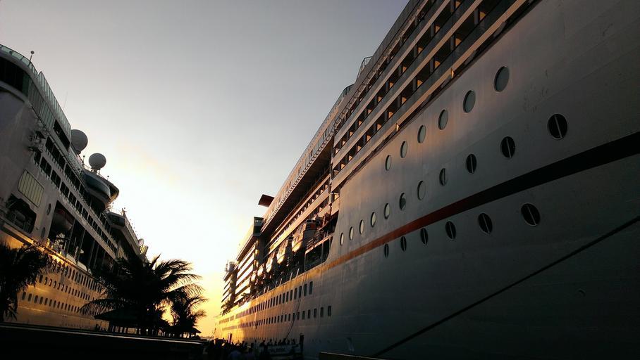 Keywords: cruising ships palm trees sunset sunrise leisure sea ocean vacation tropical holiday luxury vessel liner caribbean journey