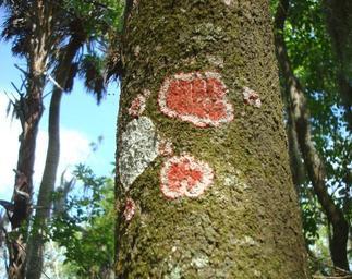| Keywords: Cryptothecia rubrocincta.dollinger.jpg The Christmas Lichen Cryptothecia rubrocincta growing on Sabal palmetto at Myakka River State Park Sarasota County Florida Own 3 7 2009 Neil Dollinger public domain Cryptothecia rubrocincta Myakka River State Park |
