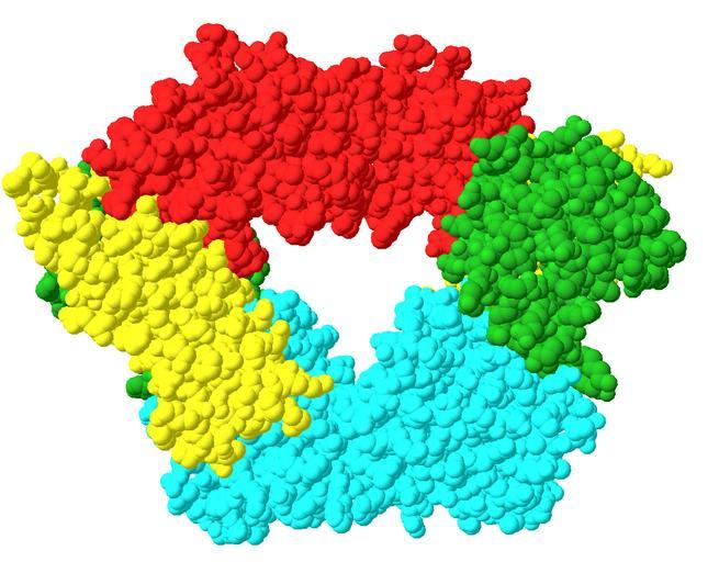| Keywords: Crystal Structure of the FokI endonuklease - PDB-2FOK.png en Endonuclease FokI dimer derived from Planomicrobium okeanokoites Color was determined individual domain name - red the first domain; D1 green second domain; D2 yellow third domain; D3 - responsible for the connection to DNA Endonuclease<br> - blue - for the domain corresponding to the intersection of DNA Crystallographic data visualization was made by Swiss-made PDBViewer 4 0 1 program of the file PDB 2FOK http //www pdb org/pdb/explore/explore do structureId 2FOK pl Dimer endonukleazy FokI pochodzącej z Planomicrobium okeanokoites Kolorami oznaczono poszczególne domeny - czerwony pierwsza domena; D1 zielony druga domena; D2 żółty trzecia domena; D3 - odpowiadające za przyłączenie endonukleazy do nici DNA<br> - niebieski - domena odpowiadająca za przecięcie nici DNA Wizualizację danych krystalograficznych wykonano programem Swiss-PDBViewer 4 0 1 z pliku PDB 2FOK http //www pdb org/pdb/explore/explore do structureId 2FOK own Marcello002 2009-12-26; 22 25 Restriction endonuclease FokI N-terminal recognition domain DNA repair |
