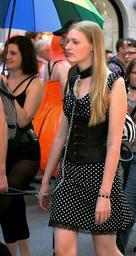 | Keywords: CSD Munich 2011 008.JPG de CSD in München 2011 en A blonde woman is being led on a chain which is fastened to her collar at the Munich CSD 2011 parade own Usien 09 07 2011 Cc-zero Personality rights Christopher Street Day in Munich 2011 in Munich Collars BDSM Black dresses Dotted dresses 2010s dresses |