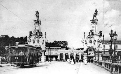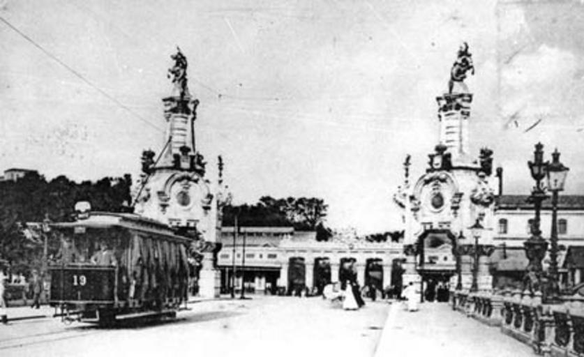 Keywords: CTSS 1905.jpg Tranvía eléctrico Tranvía eléctrico de la CTSS en el puente María Cristina www dbus es 1905 CTSS Ver licencia PD-old Transport in Donostia Historical images of Donostia Black and white photographs of cities Maria Cristina Bridge Donostia-San Sebastián 1905 in Spain