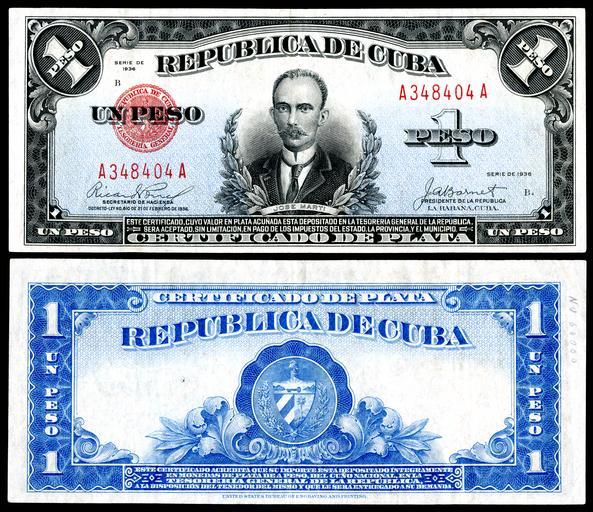 Keywords: CUB-69b-República de Cuba-one silver peso (1936).jpg José Agripino Barnet Presidente de la República <BR/>The United States BEP prepared and issued Cuban silver certificates Certificados de Plata in eight series 1934 1936 1936A 1938 1943 1945 1948 and 1949 each series marking a change the authorizing signatures of either the Cuban Secretary of the Treasury Secretario de Hacienda or the President Presidente de la República 2014-10-19 Image by Godot13 Bureau of Engraving and Printing Institution Smithsonian National Museum of American History Use of this image should give credit to the National Numismatic Collection National Museum of American History other versions PD-USGov Godot13 / Smithsonian Institution 2013030510011547 <noinclude> DEFAULTSORT CUB-69b-República de Cuba-one silver peso 1936 jpg cc-by-sa-4 0 Uploaded with UploadWizard 2014 User Godot13 NNC Banknotes scanned by User Godot13 NNC Foreign Banknotes Banknotes of Cuba Banknotes with a face value of 1 |