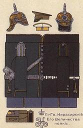 | Keywords: CuirasHMregiment-1910-Rus-2.jpg лейб-гва дии Ки аси ского Его Величества полка 1910 год Шенк В К Таблицы фо м обмунди ования Русской А мии СПб 1910 Шенк В К 1910 PD-old His Majesty's Cuirassier Guards Regiment Pickelhaube Tables of the uniforms of the Russian Army by V K Schenk 1910 |