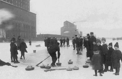 Keywords: sports curling winter grain elevators grainelevators kam river kamriver children fort william fortwilliam winter sports wintersports cpr canadian pacific railway canadianpacificrailway thunder bay thunderbay ontario canada history blackandwhite monochrome black and white Date: c. 1893-94 Description: This photograph shows a group of unidentified men curling on the Kam River during the visit of Lord Aberdeen, Governor General of Canada. The men are playing on the ice in front of the Canadian Pacific Railway's grain elevator B (prior to the construction of Elevator E). A group of young boys watch the action. Accession No.: 972.27.1 Date: c. 1893-94 Description: This photograph shows a group of unidentified men curling on the Kam River during the visit of Lord Aberdeen, Governor General of Canada. The men are playing on the ice in front of the Canadian Pacific Railway's grain elevator B (prior to the construction of Elevator E). A group of young boys watch the action. Accession No.: 972.27.1 |
